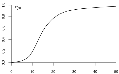 The CDF of a random variable Y is F_Y(a) := P(Y \leq a), \quad a \in \mathbb R.