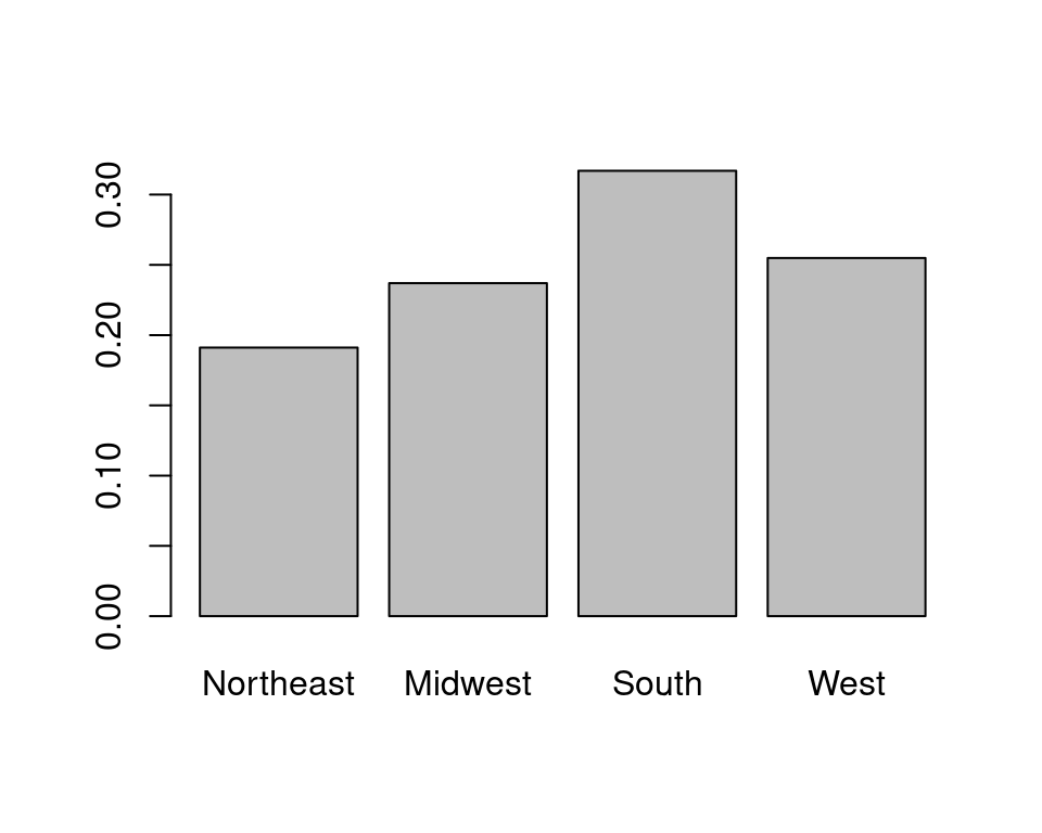 Let’s load the CPS data from Section 1 and estimate the PMF for region (1 = Northeast, 2 = Midwest, 3 = South, 4 = West):