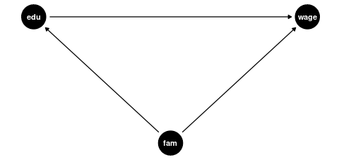 The coefficient \beta_2 measures how strongly education and earnings are correlated, but this association could be due to other factors that correlate with both wages and education, such as: