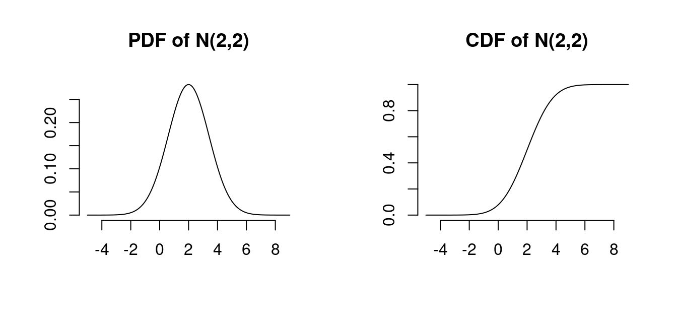 Standardizing: If Z \sim \mathcal N(\mu, \sigma^2), then \frac{Z-\mu}{\sigma} \sim \mathcal N(0,1). The CDF of Z is P(Z \leq a) = \Phi((a-\mu)/\sigma).